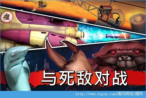 3、与其它鲨鱼、潜水艇、以及更多奇奇怪怪的深海生物作战,获得高分。