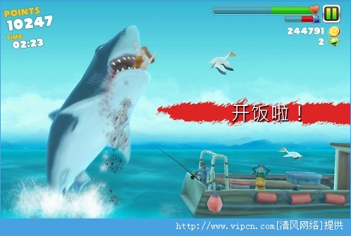 5、逐渐解锁更多水下凶猛野兽:灰鲭鲨、锤头鲨、虎鲨和无敌的大白鲨!