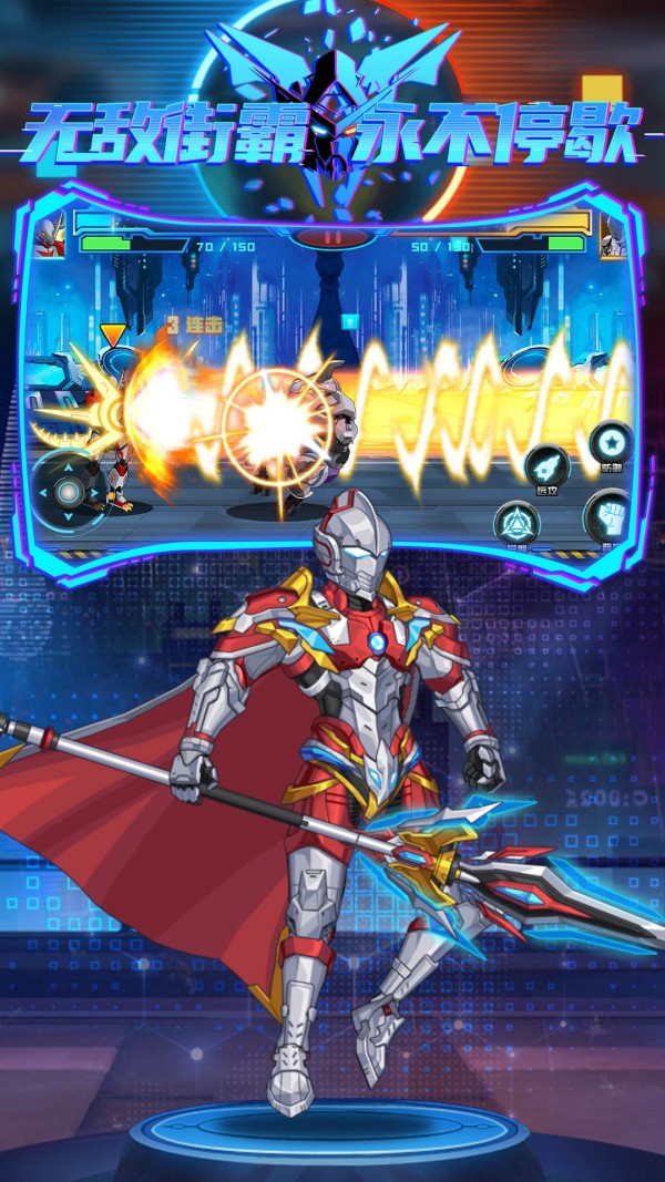 无敌街霸永不停歇是一款机甲动作冒险类游戏,玩家将能够组装和升级他们自己的独家机甲,机甲可以免费解锁,每一个都有不同的技能和属性,更多的机甲升级,高清质量,快来体验吧。