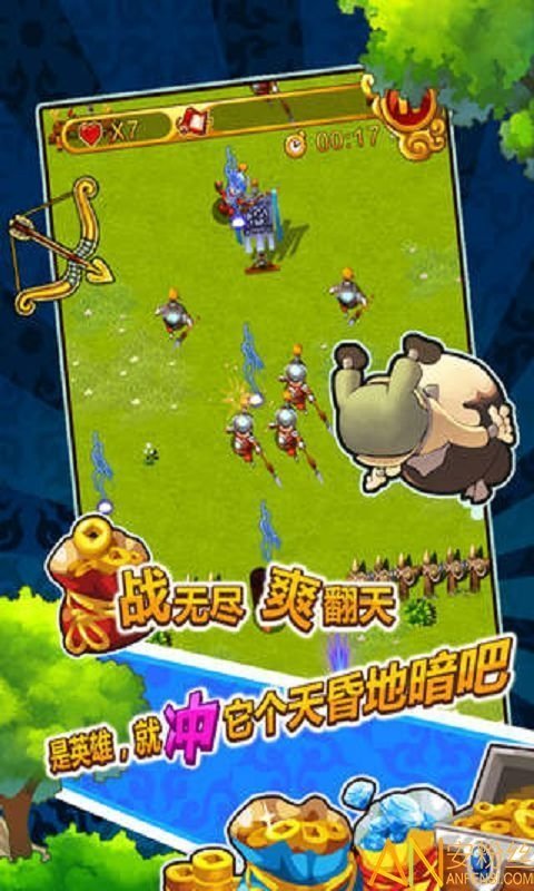 冲啊三国是一款三国题材的策略卡牌类手机游戏,可爱三国武将,众多英雄任你招募,回合阵容对战,丰富卡牌任你搭配,在线pk,实力角逐。爆笑的鬼畜剧情,让人忍俊不禁。奇葩的大招随便释放,战队出击,进阶互动,激战超强的boss,指尖热血竞技,便捷轻松操作,玩起来无限精彩。非正常的成长之路,升级欢乐多,逗趣英雄伴你前行。