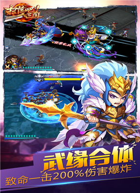 精美的美术技术,炫酷的战斗画面,热血沸腾的音乐效果,让你仿佛置身于真三国,体验男儿抛头颅、洒热血,不为功名,只为取敌将首级的热血豪情!