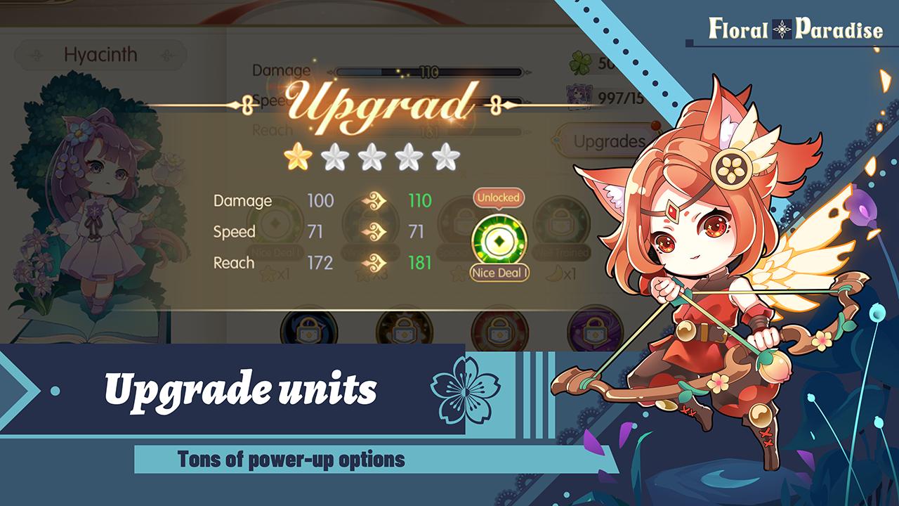 花卉乐园Floral Paradise是一款益智塔防策略游戏,玩家肩负着拯救花镜的使命,招募培养你的英雄,提升他们的战斗力,参与到紧张激烈的战斗去,Q版可爱的英雄以及丰富的战斗奖励让你玩上瘾。