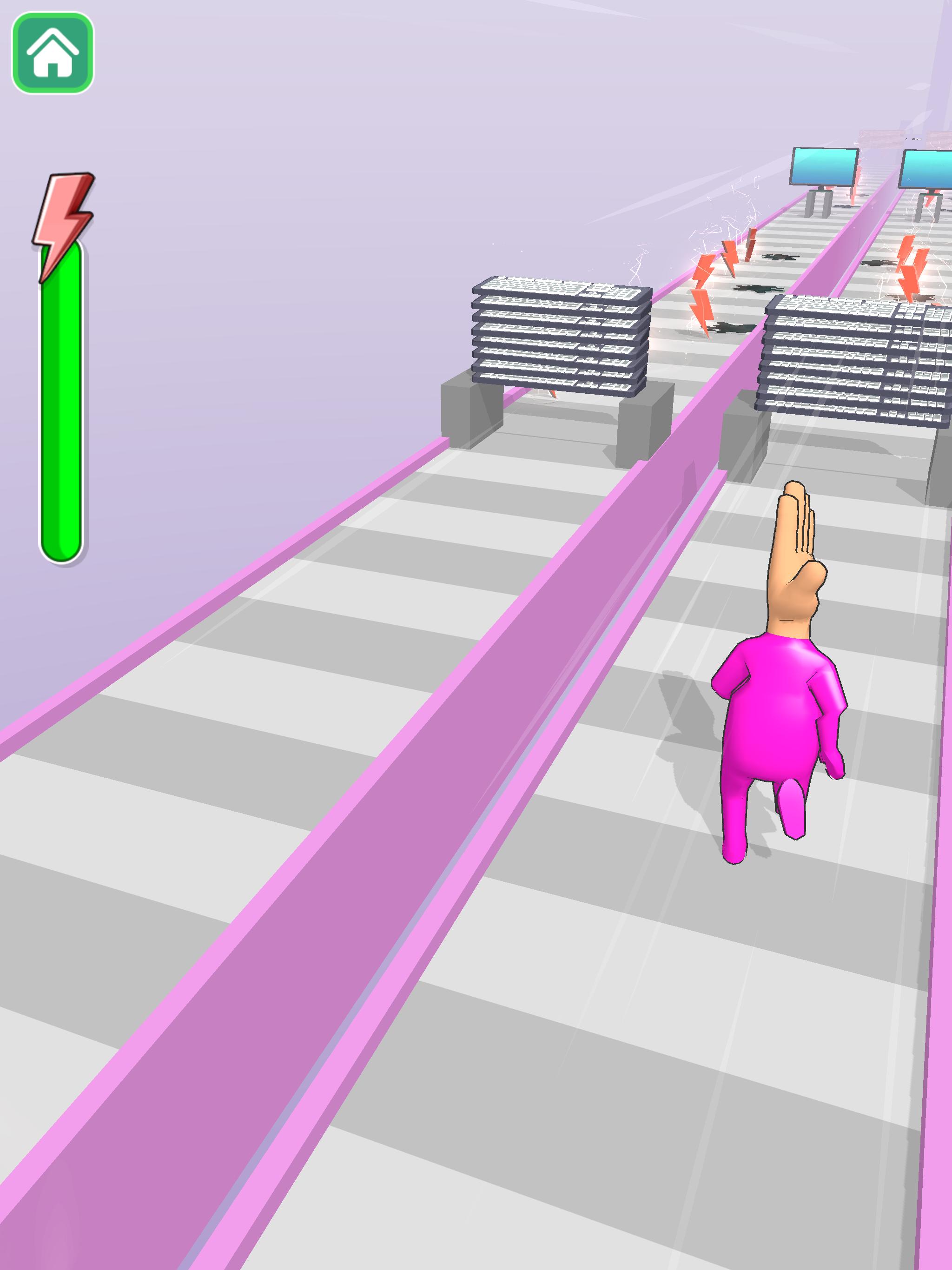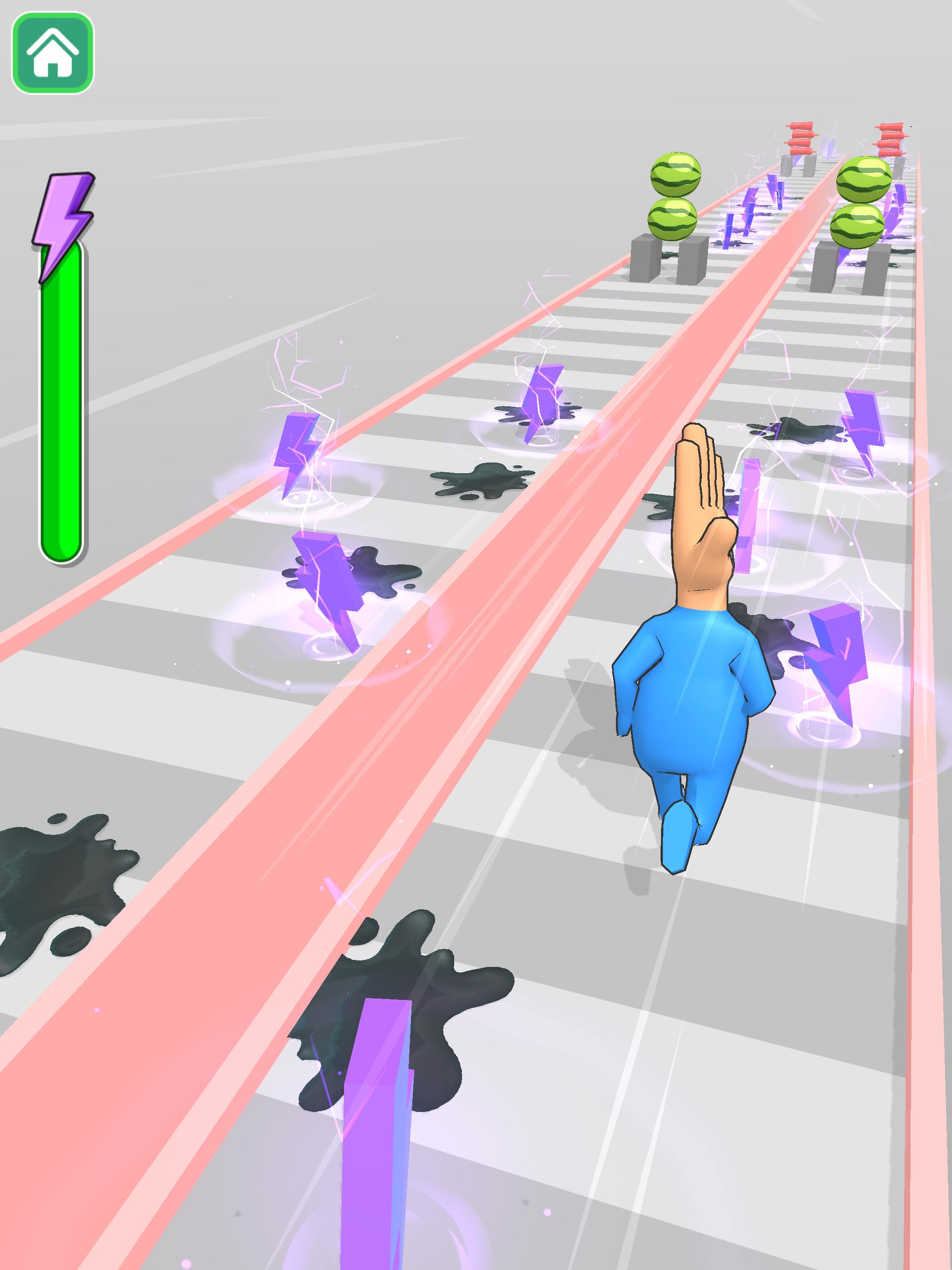 手击Hand Hit是一款趣味娱乐挑战类游戏,游戏玩起来搞笑魔性,玩家的造型是一个头部是手的橡皮小人,在赛道上与其他小人竞跑,用手击打关卡中遇到的障碍和机关,快速抵达终点。