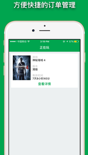 易酷是一个PS4游戏租借平台。易酷是一个提供PS4的数字版游戏出租服务!专门为体验试玩而设计的APP,租赁.管理游戏从未如此简单。想玩就能玩。