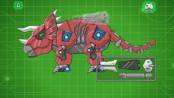 机甲爱好者们,快来这里组建你的机甲恐龙,在这个机器三角龙中,玩家自己组装一个三角龙,用它来进行激烈的战斗,非常的具有成就感,游戏中会给你各种零件参照,想要有一个威武霸气的三角龙吗,那么就赶紧来动手做一个吧,精彩的机器战斗将会让你爱不释手,