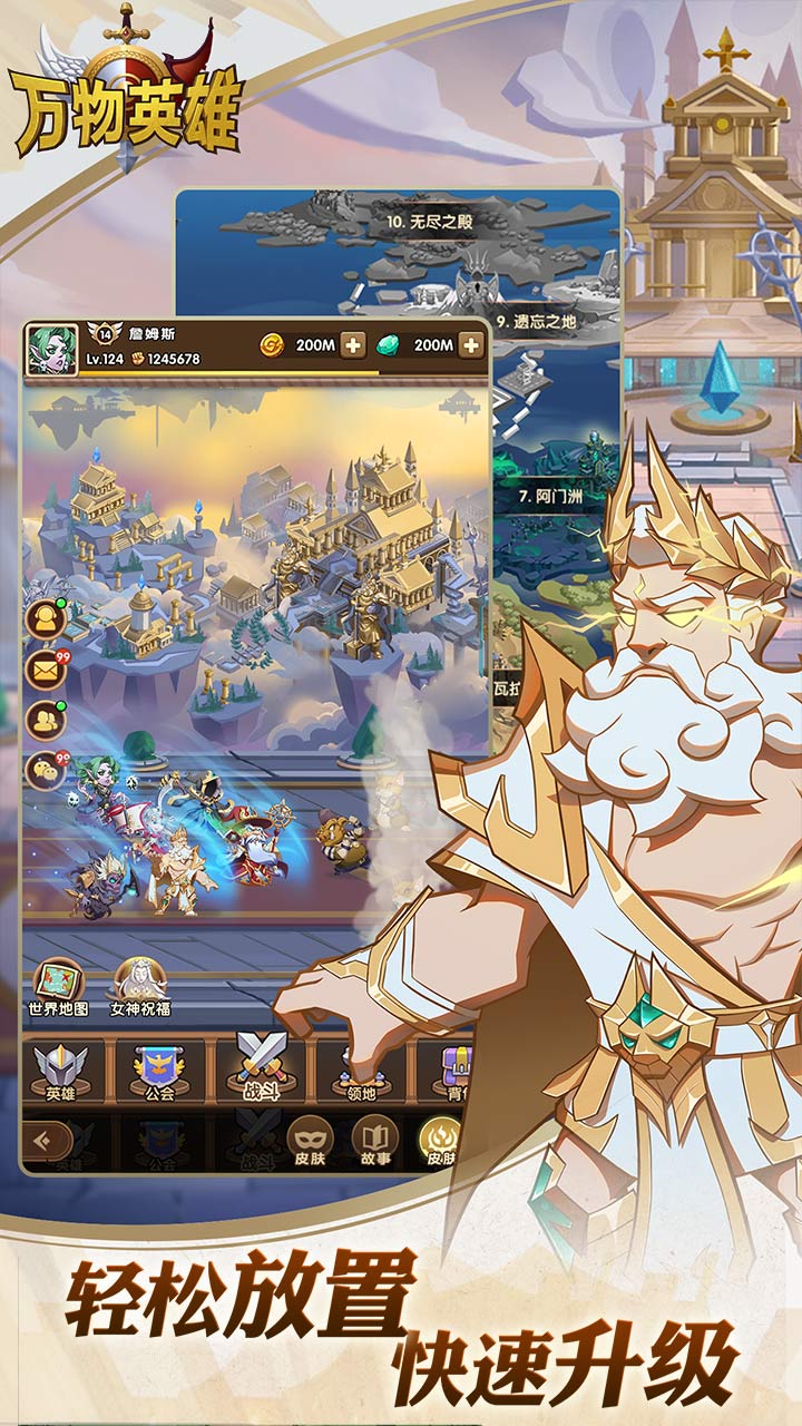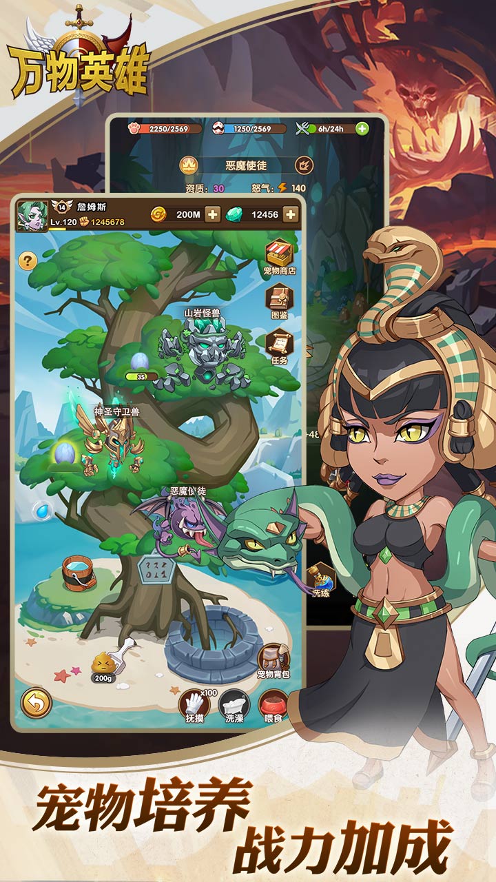 万物英雄是一款放置卡牌RPG类游戏,在游戏中,你可以召唤天地万物的英雄,组建传奇团队,培育可爱的宠物,并与同行公会合作完成史诗般的塔攻防战斗,保卫家园,重建光明的奥丁世界。