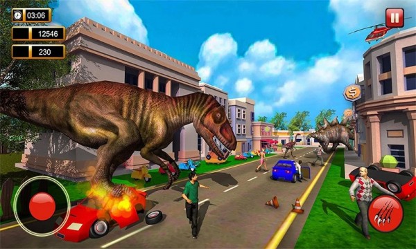 滑动屏幕来控制恐龙,让它们在城市中横冲直撞。