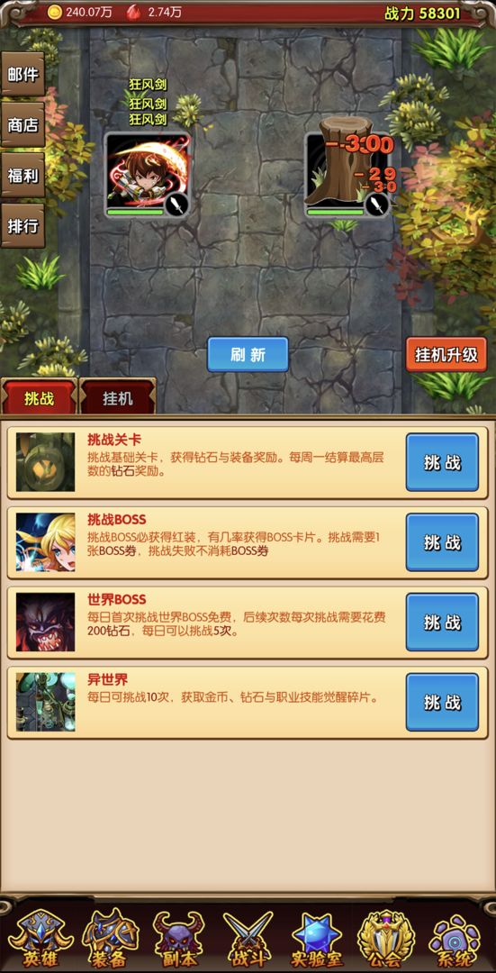 在游戏中,将会有大量的战斗等着你来挑战,完成挑战,这样你就可以获得更多丰富的资源。
