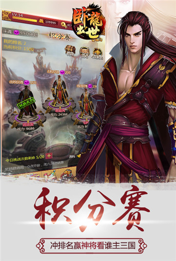 卧龙出世是一款好玩的RPG卡牌手游多样化的阵容随你搭配,天下尽在你的掌握之中,在卧龙出世手游中,自由的搭配属于你的名将团队,小伙伴们快来召集自己的队友一起玩耍吧。