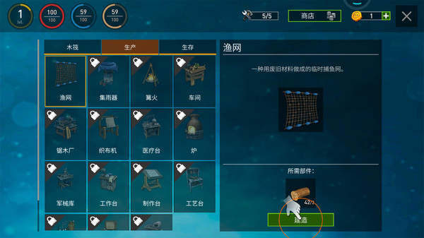 获得各种有效的物品和海洋物品,并利用这些资源来制造武器和装备。
