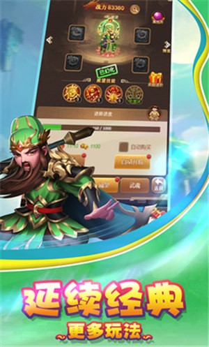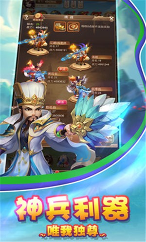 无尽三国大冒险是一款操作方式非常简单的策略对战手游,有许多的竞技模式等待你的参与,各种强大BOSS击杀让你来免费获得大量的元宝和装备,战力的强化,让武将在你的指挥下发挥更强的实力!