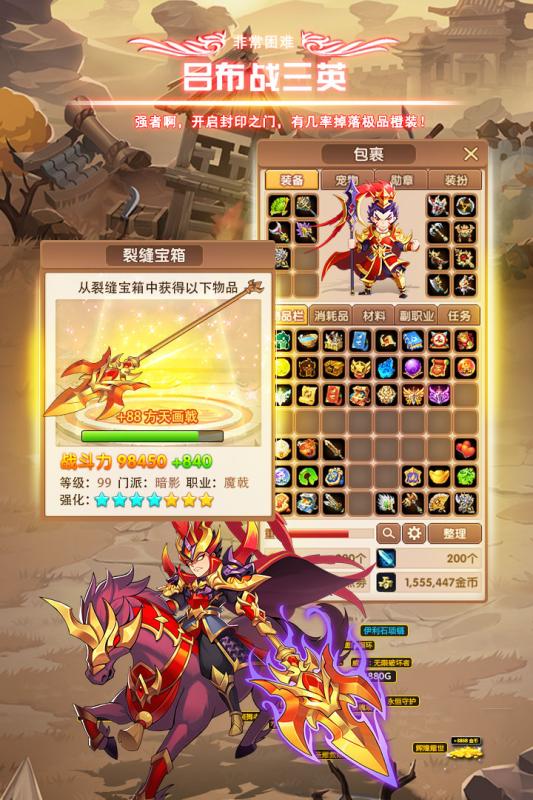 大型国战一触即发,全服玩家同台竞技比拼,激情对战,策略对战,争霸九州,自由对战。