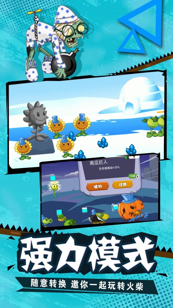 您可以在游戏中的植物阵营或僵尸阵营之间自由选择,无数关卡,合理组合你的战斗阵容就能获胜。