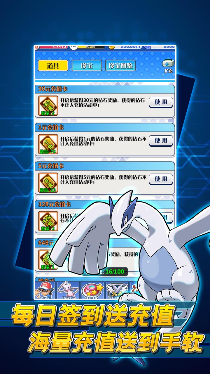 上千只姿态各异的神奇宝贝超进化,拥有不同的职业技能和力量属性宝贝等你塑造。