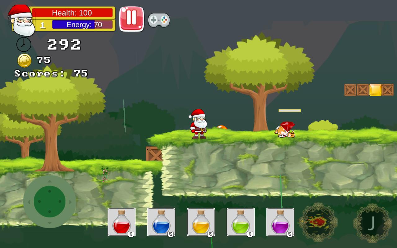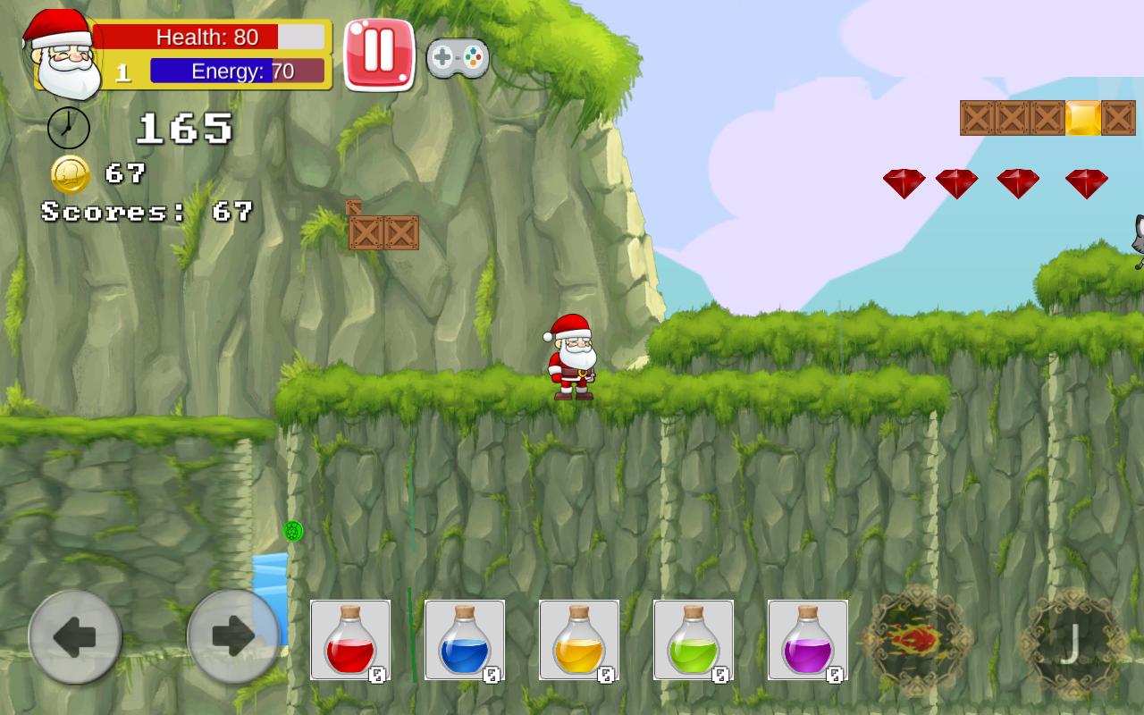 超级圣诞老人冒险1Super Santa Adventures 1是一款动作冒险闯关类游戏,玩家扮演圣诞老人利用场景和机关进行闯关,收集关卡中的硬币,硬币可以在游戏商店中购买物品。
