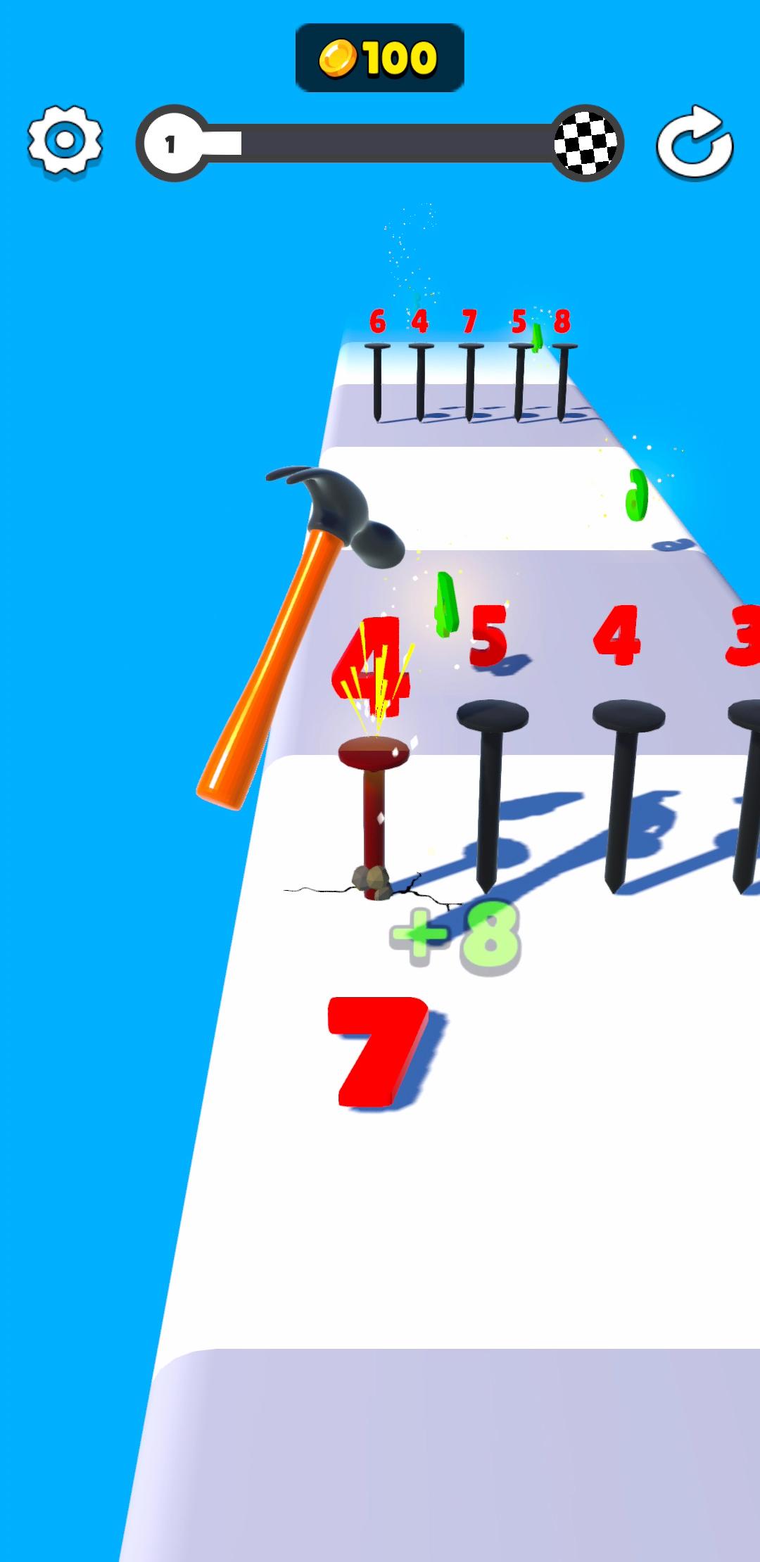 该游戏旨在创造将钉子钉入地面的满足感,这个游戏很容易学习,玩起来很有趣。