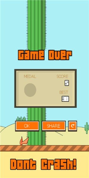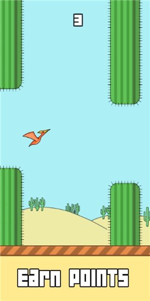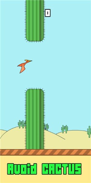 通过点击屏幕改变恐龙的飞行高度,躲避仙人掌看看你能飞多远吧。