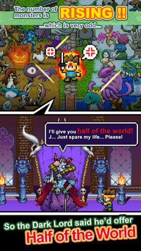 勇敢的你说给我半个世界游戏:地牢的战斗继续下去,和魔王分出胜负,一次次的完成各种战斗,探险家们寻找真正的宝藏。寻求一次极限的突破,带来纯正的街机味道,你可以用不同的装备武装自己,让自己变得更强大,去打破所有的机关,开始触手可及的最简单的冒险挑战。