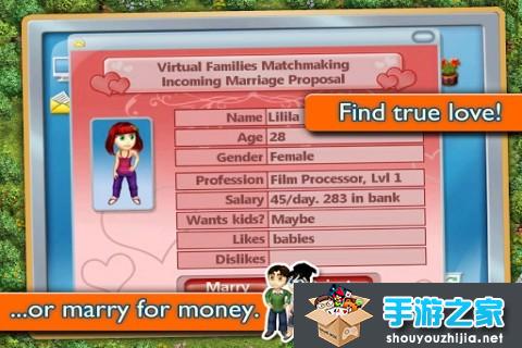 1.采用自住您的移动设备里的几千一点的人!在这个生活模拟游戏,帮助他们选择一个丈夫或妻子,开始他们的虚拟家庭!