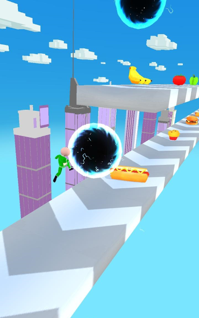 1. 在路上遇到垃圾食品时,长按或点按屏幕,让你的小人跳起来,路上最需要避开火焰;