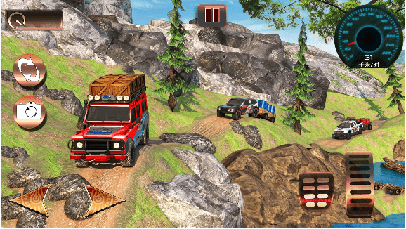 1、这是一款画质相当不错的山地竞速驾驶游戏,在这款游戏中玩家这次要做的是就是驾驶越野车进行闯关;