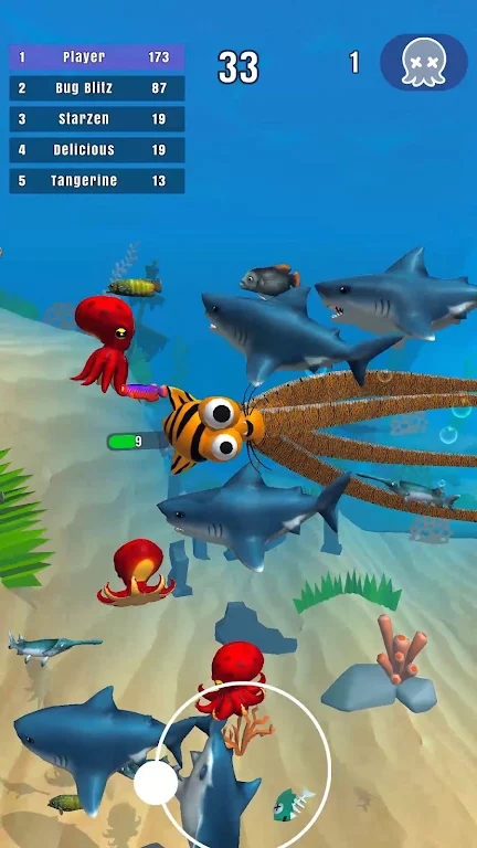 海妖io游戏:一款非常另类的章鱼冒险生存游戏,全新且非常多样化的游戏道具可以让玩家感受到很多乐趣的体验,吃掉海洋中的浮游生物让你拥有更长的生存能力,当然,还需要避开各种天敌,避免被它们杀死。没有游戏武器,但玩家可以免费使用自己的身体进行游戏。