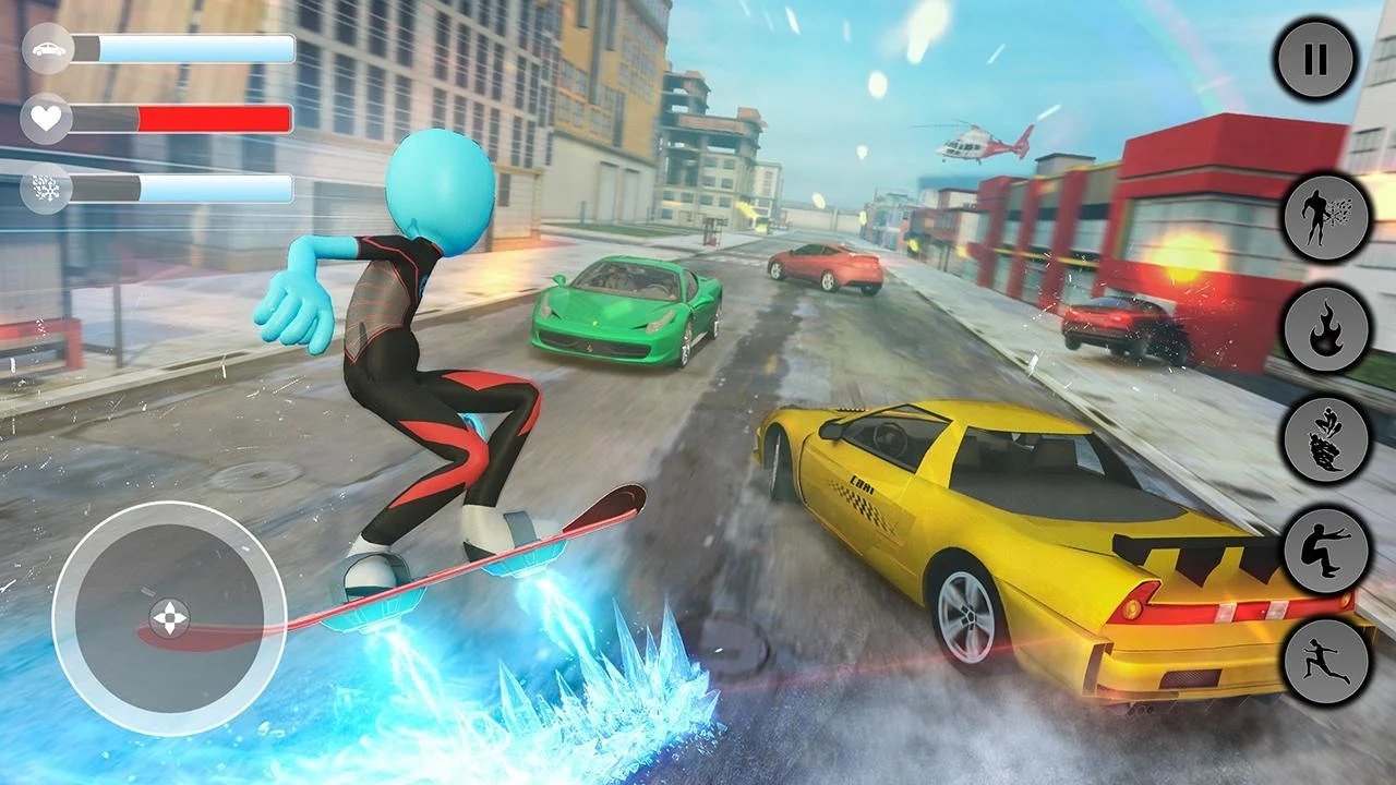 火柴冰英雄犯罪城游戏安卓版(Stickman Ice Hero Crime City-Rope Hero)这是一款属于火柴人英雄的战斗游戏,在这个充满罪犯的城市中,必须要有一个维护秩序的人存在,而这一次的维护秩序者便是火柴人英雄,这次的英雄有着能够变身的能力,能够使自己变成各种各样的形态,在冰块的能力激发下,他能够对那些坏蛋施展自己的超能力将他们也变成冰块!