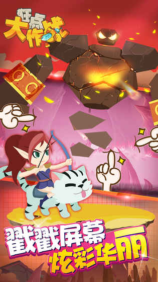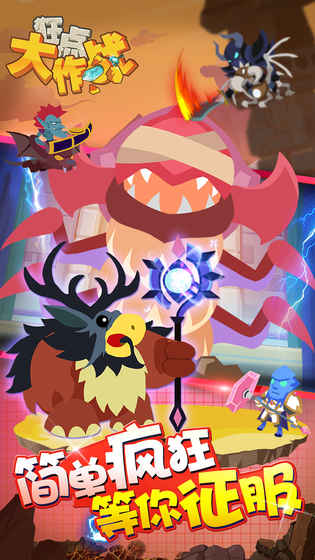 《狂点大作战》这可能是史上最好玩的休闲手游,游戏中你作为勇士来保护世界,解锁强大的技能,收集传奇神器,升级忠实的宠物来为你而战!来吧!勇士必须由你来消灭这些巨大的怪物,恢复和平和秩序就靠你了!