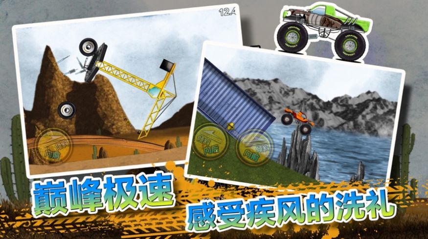 1:游戏中你可以控制越野车向前冲刺的速度,游戏中有不同难度的等级。