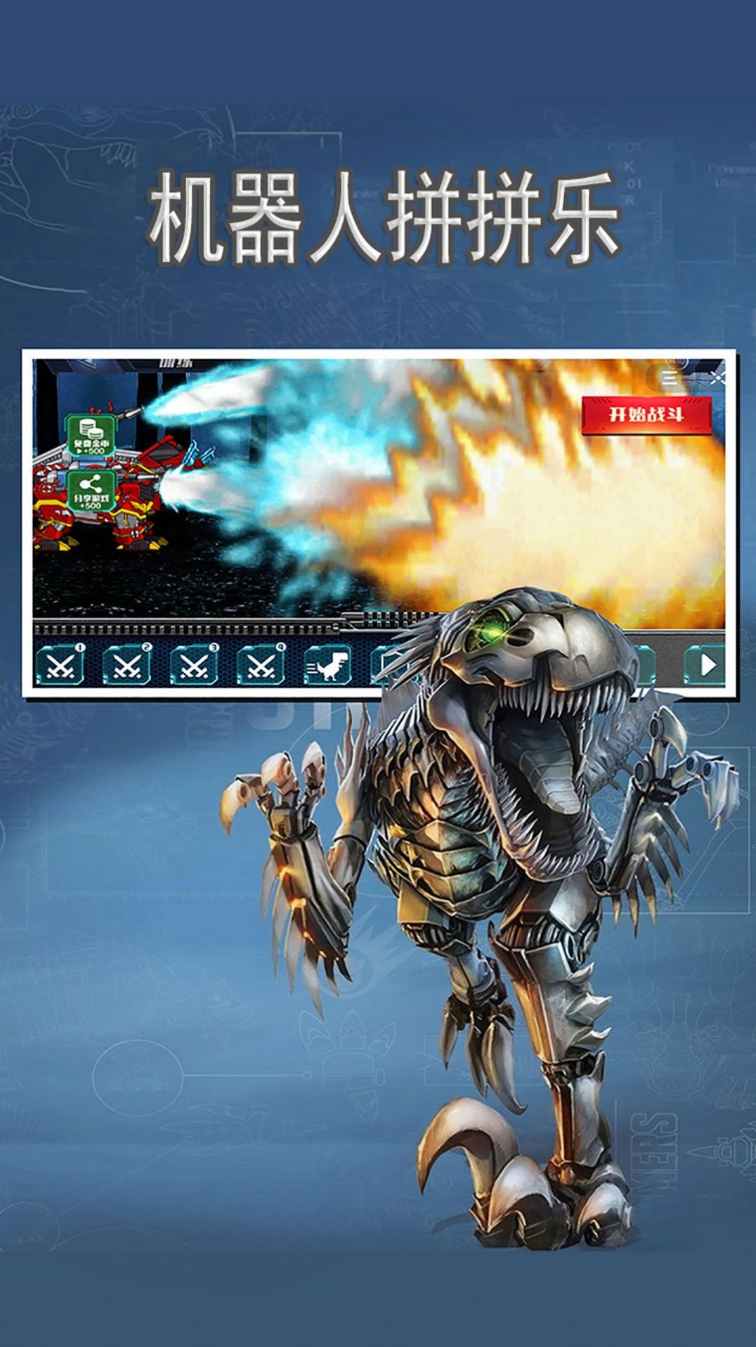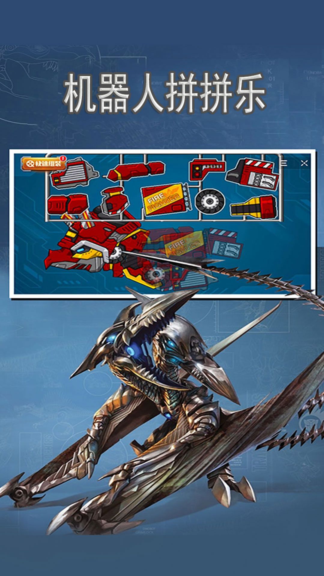 机器人拼拼乐游戏将组装成为巨大的机器恐龙出来,融入格斗的玩法元素,非常的新颖而且有趣,但是要结合其他的道具才可以,将打造自己的专属机器人,将和其他玩家们进行联手对抗,这一点很棒,还有必杀技可以使用,一招秒杀。