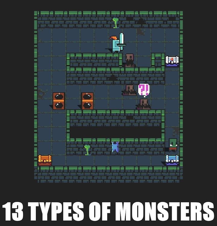 3、每个主题都有特定的怪物,像素化的地牢和炸弹,陷阱等障碍物,注意利用危险物品,怪物们也会受到伤害。