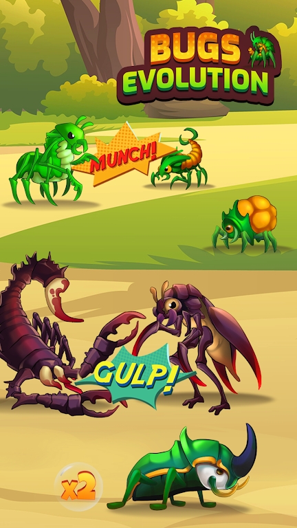 雨林甲虫进化游戏:在热带雨林中生存下去,获得不同的能力,吞噬眼前的所有食物,来完成所有的冒险任务,加入了新的道具,成为森林之中的真正霸主。操作也非常简单,玩家只需点击屏幕即可操作,了解不同bug的能力和技巧,以便更好的应对,带给你更多不同的挑战。(Bugs Evolution)
