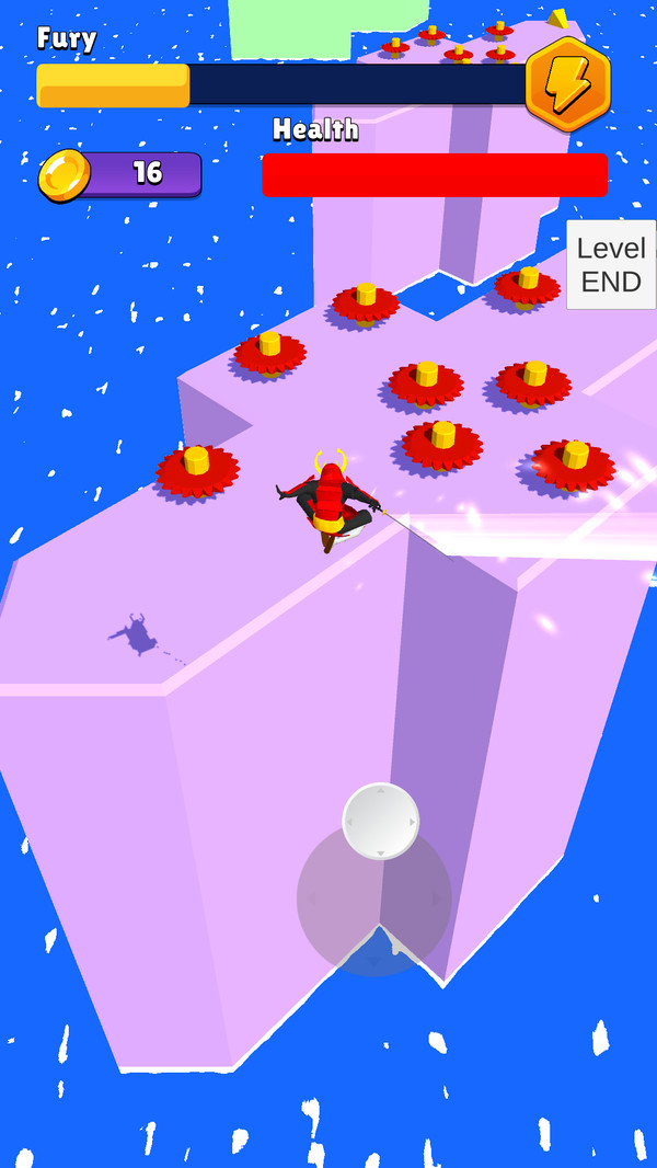 3、游戏中的攻击动作按键同时控制角色的移动,游戏中主角的宝剑可以通过击杀敌人来增加长度,这一点是游戏的最大乐趣。