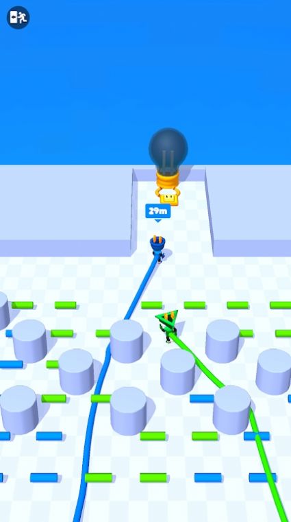 1、跑过去收集,尽量不要绕过障碍物!第一个到达最后一个插头,你赢了。