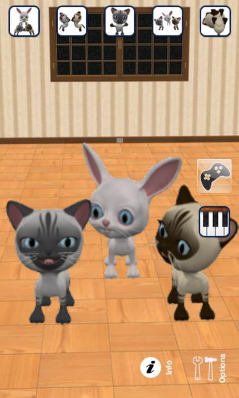 《会说话的三只小猫 Talking 3 Friends Cats & Bunny》是一款休闲游戏,与3好友猫和兔子。他们的回答与她滑稽的声音和你说什么或你的触摸产生反应。有4个令人兴奋的内部游戏,多层次的发挥!花一些时间与这三个小的朋友和他们的伟大的游戏活动。