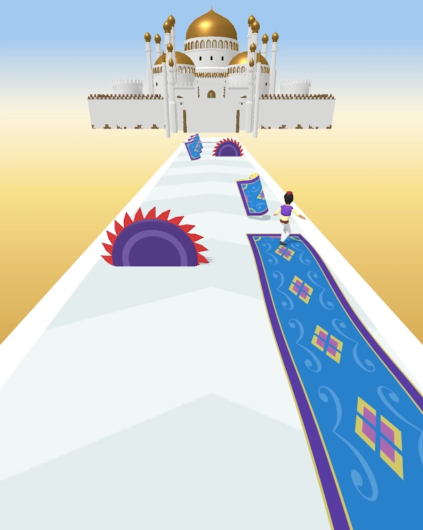 魔毯跑酷游戏(Magic Carpet Run):享受刺激的飞毯之旅,灵活的滑行冒险,沿途快速收集材料,打造更长的飞毯,极速向前飞到底,更多关卡等你来挑战。飞行时注意避开危险的障碍物,例如电锯。如果碰撞导致您的飞毯被切断,您的飞行也会受到影响。