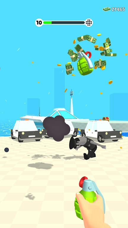 2、向你的目标投掷 TNT 和手榴弹,随心所欲地爆炸它们,抓住现金并逃跑!