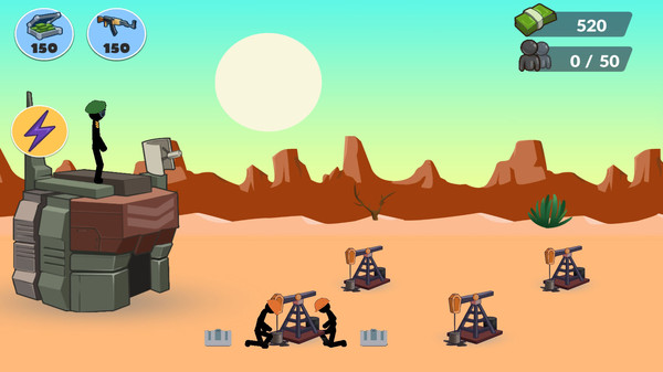 获取石油以招募更多士兵加入您的军队,与来自世界各地的玩家或在线好友对战。展示谁的火柴人军队更酷。