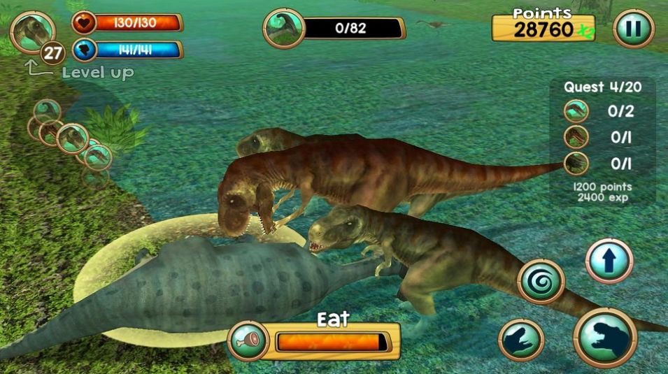 1、动作丰富的模拟游戏,在游戏中扮演一只愤怒而饥饿的恐龙,需要在森林中生存。