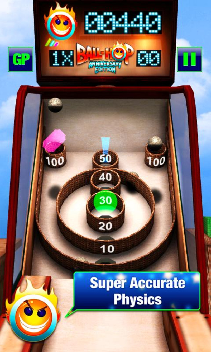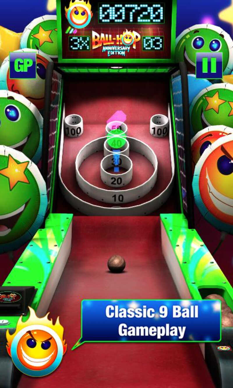 《街机跳跳球 Ball-Hop Anniversary Edition》是一款充满童年趣味的街机游戏。还记得在小时候在街机厅玩的跳跳保龄球吗,将手中的小球用巧劲滚出,然后掉进相应分数的圆环即可获得分数。现在这款游戏还原跳跳球的经典玩法,用手指轻轻一划,即可把球滚出。击中不同的道具还会有不同的效果,游戏搭配有全球排行系统,每次游戏之后就看看你的高分在全世界里是什么位置吧。