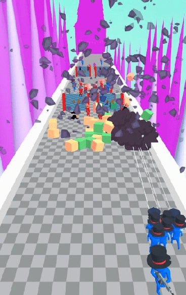 1、小人是自动向前跑的,大家只需要左右滑动屏幕控制小人经过不同的数量关系倍增门,以增加自己的人数。