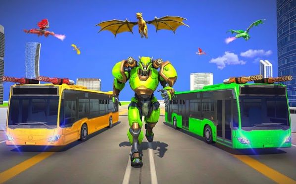 多龙机器人巴士改造2021游戏:这是一款好玩的驾驶模拟类游戏,玩家在游戏中成为真正的飞龙机器人,在天空中你可以自由飞行,当你城市中混入其他机器人敌人时,你可以直接参加战斗,直接干掉他们,当然你还可以变身为巴士,驾驶公交车在城市中移动!