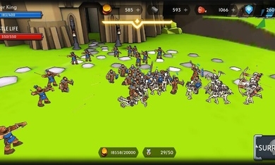 史诗幻想战斗模拟器(Epic Fantasy Battle Simulator - Kingdom Defense)安卓版是一款休闲布局战策略战类游戏,拥有大量可以解锁的士兵,玩家不断提升自己的战斗能力拥有更高的输出,他们可以在战场上获得主动权。卡通风格简单的图片以及多种战争场景的部署,合理运用多种战术一定会让你惊喜,占领更多的城市,就会有更多的资源来补充。
