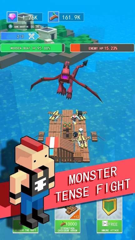 1.通过收集木材、随机宝箱、矿石和其他神秘建筑材料来建造和升级你自己的木筏,在海洋中生存。