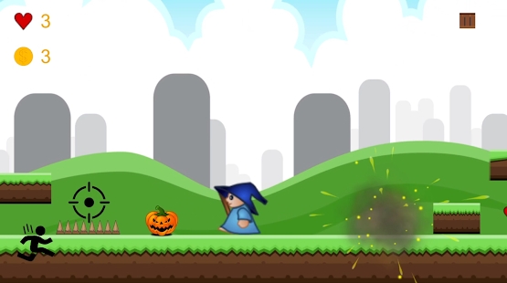 Witch Advanture游戏带你一起打怪物,你的手里有的就是一根棍子,但是你能敲打所有的小怪,谁拦着你前进的道路,你都能对他们进行一顿教训,同时在你前行的道路上,你会遇见各种的陷阱,小心躲避开就行了,遇见拦路的小怪,你用棍子打它,他就能被你消灭,你的生命每一局有3次,所以你要惜命哦!