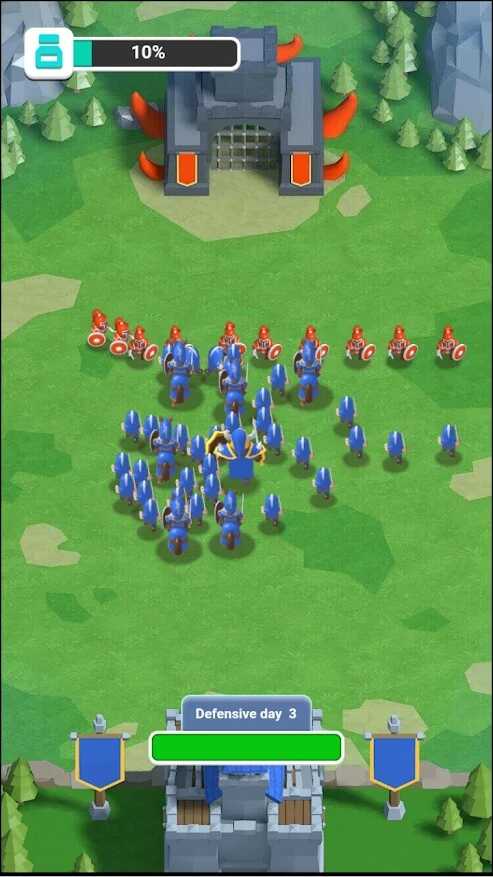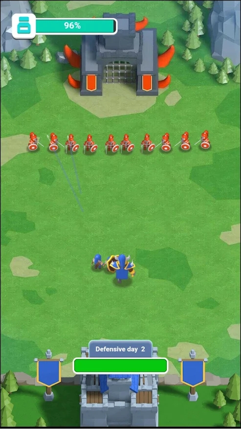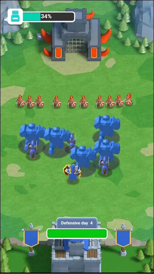 1.在你面前,在屏幕上,你会看到你的城堡,你的军队将站在它前面。在敌方城堡的一侧,敌方士兵会向你移动。