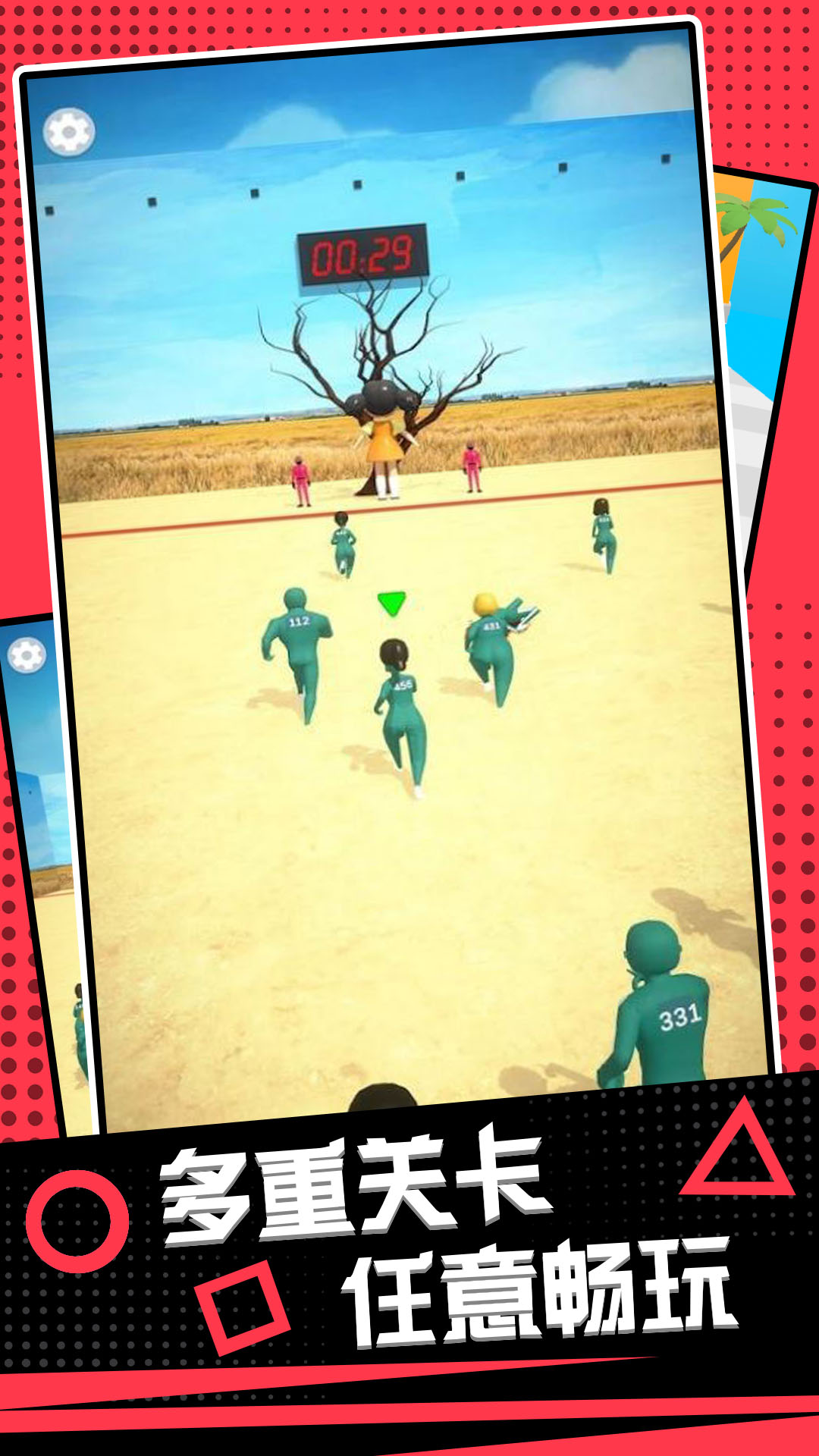 真实鱿鱼模拟器游戏将改编自鱿鱼游戏韩剧的多人休闲玩法,将真实的还原电视剧的所有不同玩法,其中有我们熟悉的木头人、红绿灯、糖饼等等,加入到这场比赛,争取到最后的一刻,获得最终的奖励,简单的操作,玩法也是很不错。