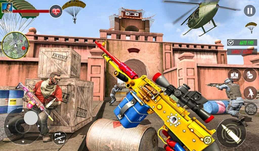 精英射击战场游戏:他的3D多人FPS射击游戏旨在体验动作、刺激和极端战场,在这些战场上,快速反应、注意力和技能对于为您的国家击倒敌人至关重要。准备好迎接具有挑战性的打击任务,以证明自己是一名铁杆士兵。当您的职责召唤时,您必须参加免费的反恐游戏。
