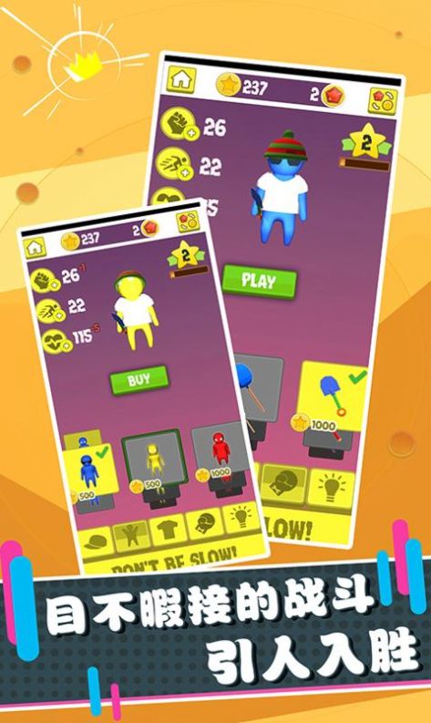 1、游戏中的关卡都是随机的,让你每次挑战都充满刺激和新鲜感,上演竞技乱斗;