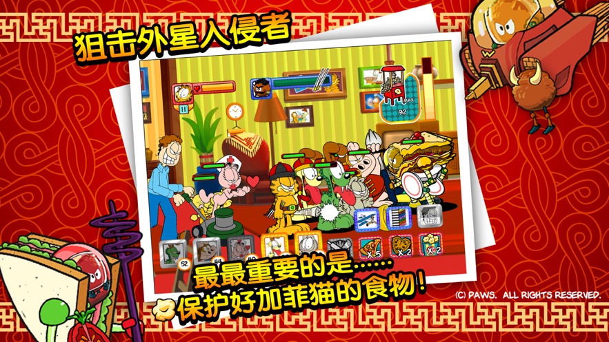 1.您需要操控乔恩那只笨重、懒惰、喜欢恶作剧的加菲猫。这只昔日里毫无英雄情结的加菲猫将会成为今天拯救世界的大英雄,给予食物入侵者以牙还牙,以眼还眼的打击。